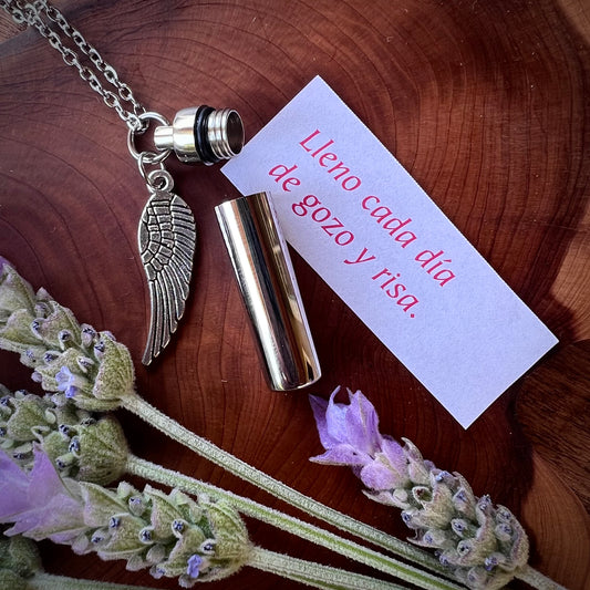 Collar cofre de los Deseos Alas de Ángel Plateada