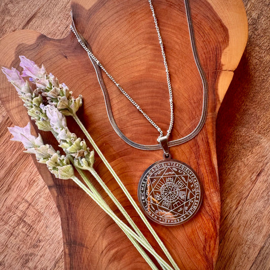 Collar Doble Con Sello De Los 7 Arcángeles Plateado