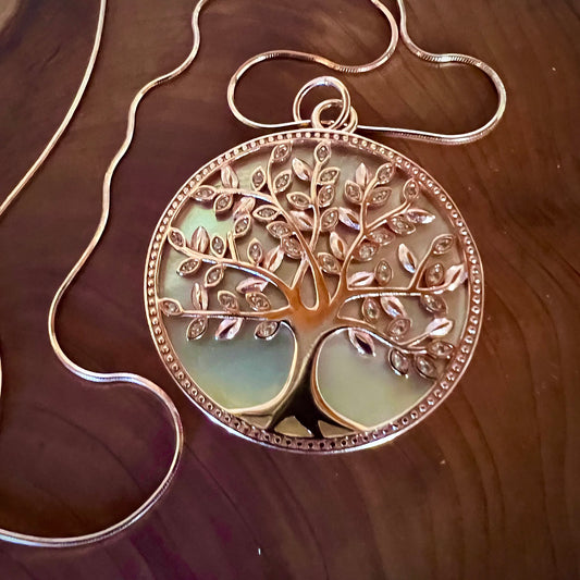 Collar de Árbol de la Vida Sobre Madre Perla Rosa Dorado