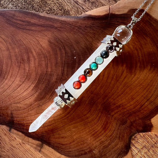 Collar de Punta de Cuarzo Blanco con Chakras